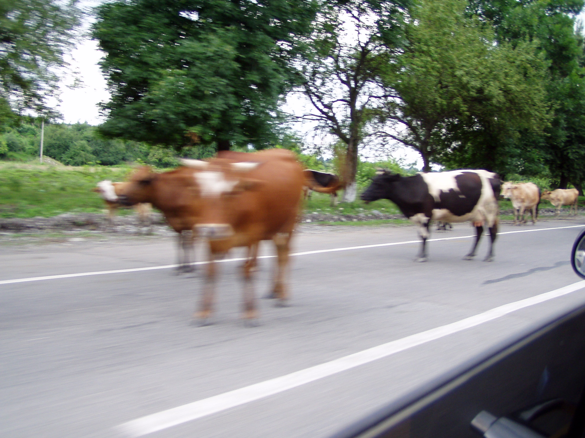 Наш москвич на газу и он нас бодро мчит, а на встречу несутся коровы!